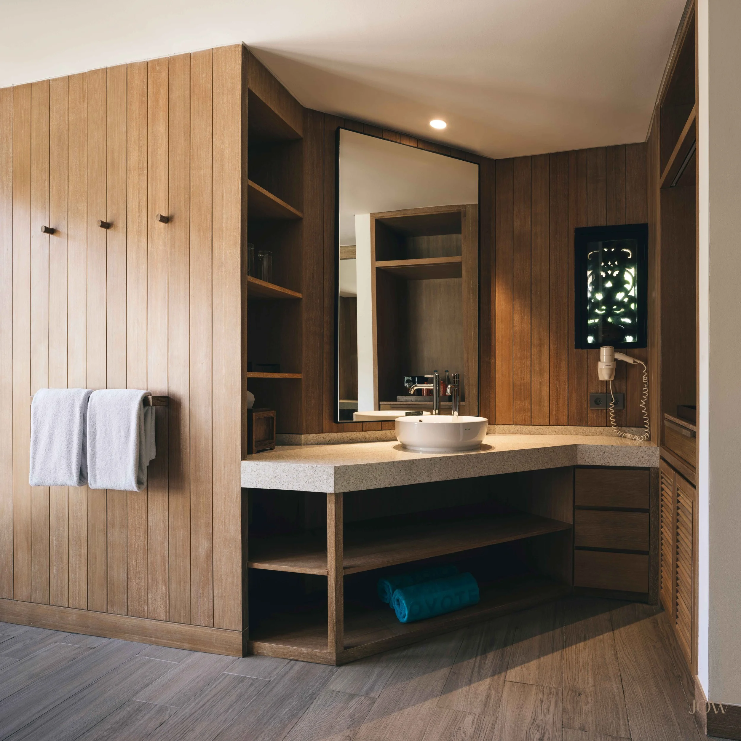 Materiality plays a central role in expressing authenticity. Locally inspired textures — timber, stone, woven elements, and artisanal finishes — are thoughtfully integrated with refined contemporary detailing. Furniture selections are curated to reflect craftsmanship and comfort in equal measure: tactile, grounded, and quietly elegant. The colour palette draws from the island’s natural tones — warm earth, blue sea, muted sands — subtly layered to create depth and calm.