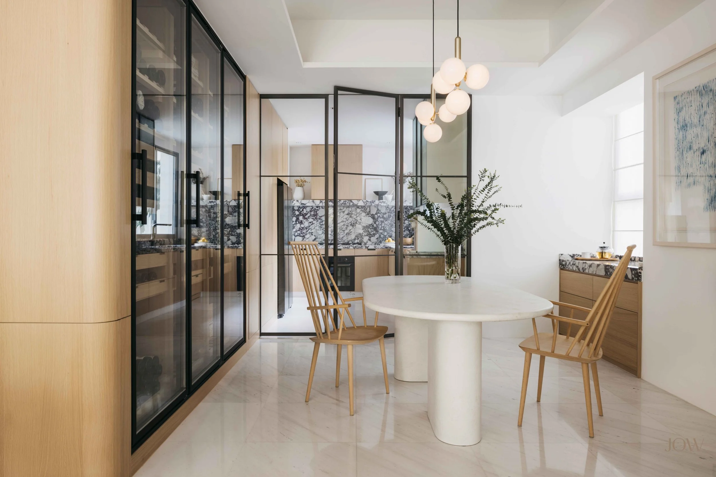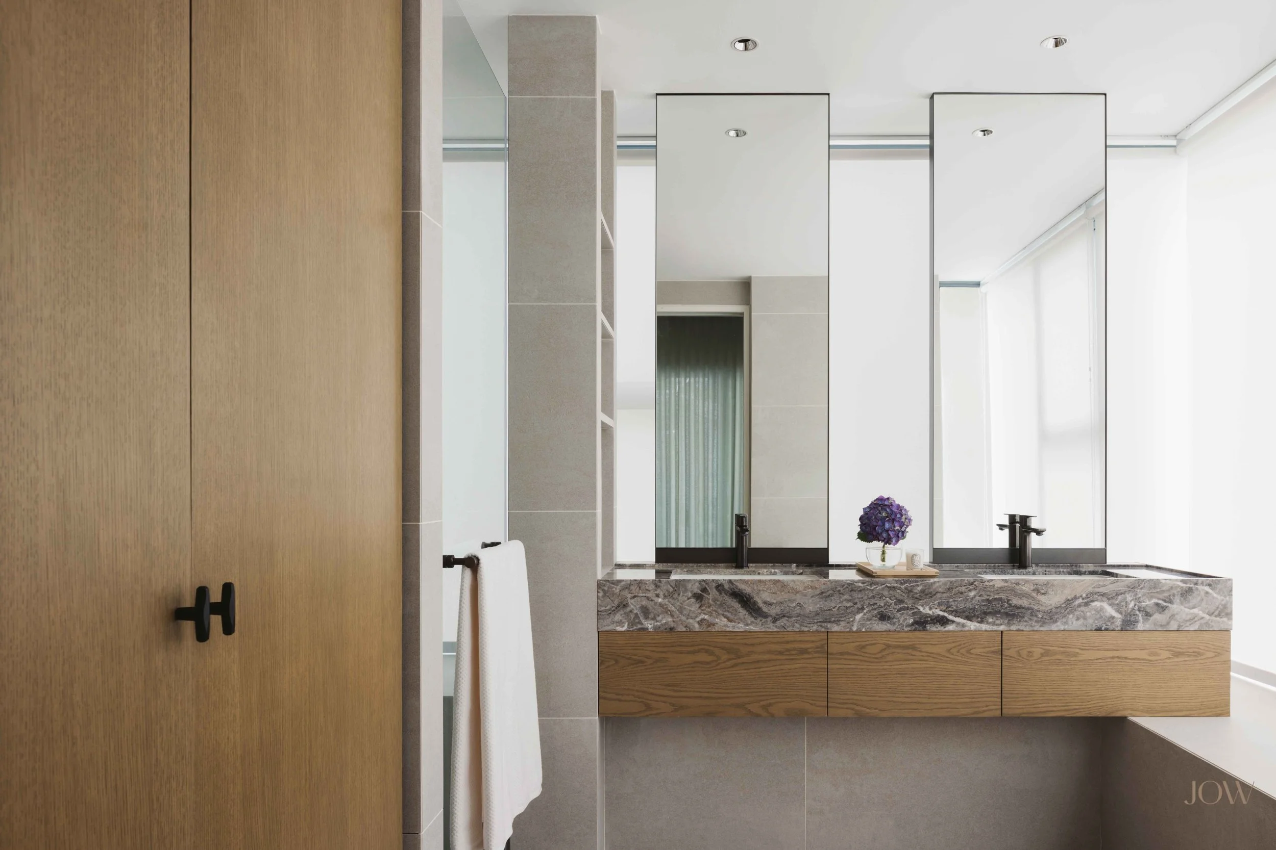 The extensive use of natural materials such as Oak veneer and marble were selected together with the homeowners to form a unique palette for this project. The goal was to craft a home exuding an air of understated elegance and refined taste.