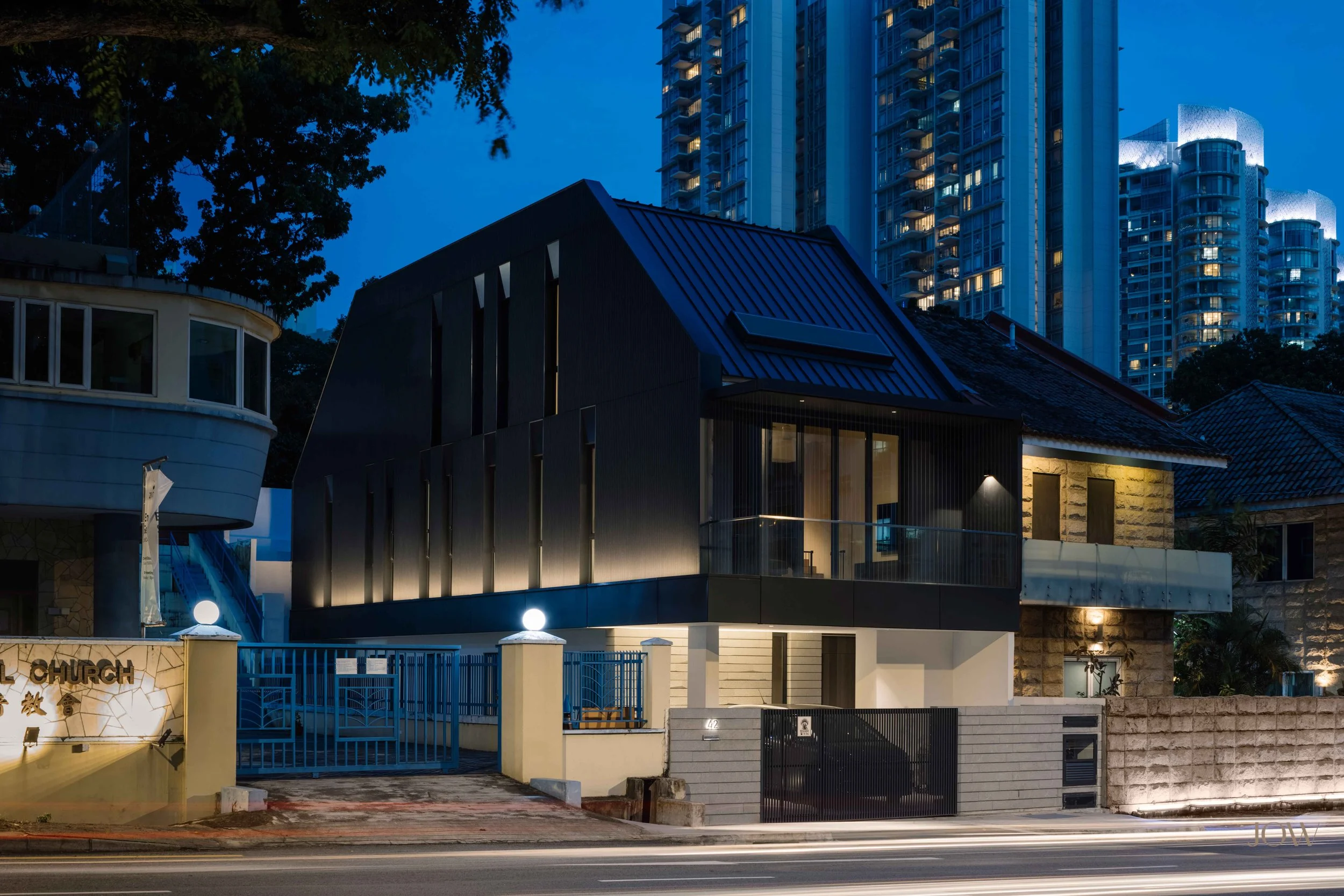 Situated on the fringe of the central business district in Singapore, HKR House is a semi-detached dwelling house that fronts a busy four-lane main road and neighbours a church. Designed for a young family, their growing and changing needs as well as site conditions of the existing house were considered, resulting in a pleasant home which the clients enjoy.